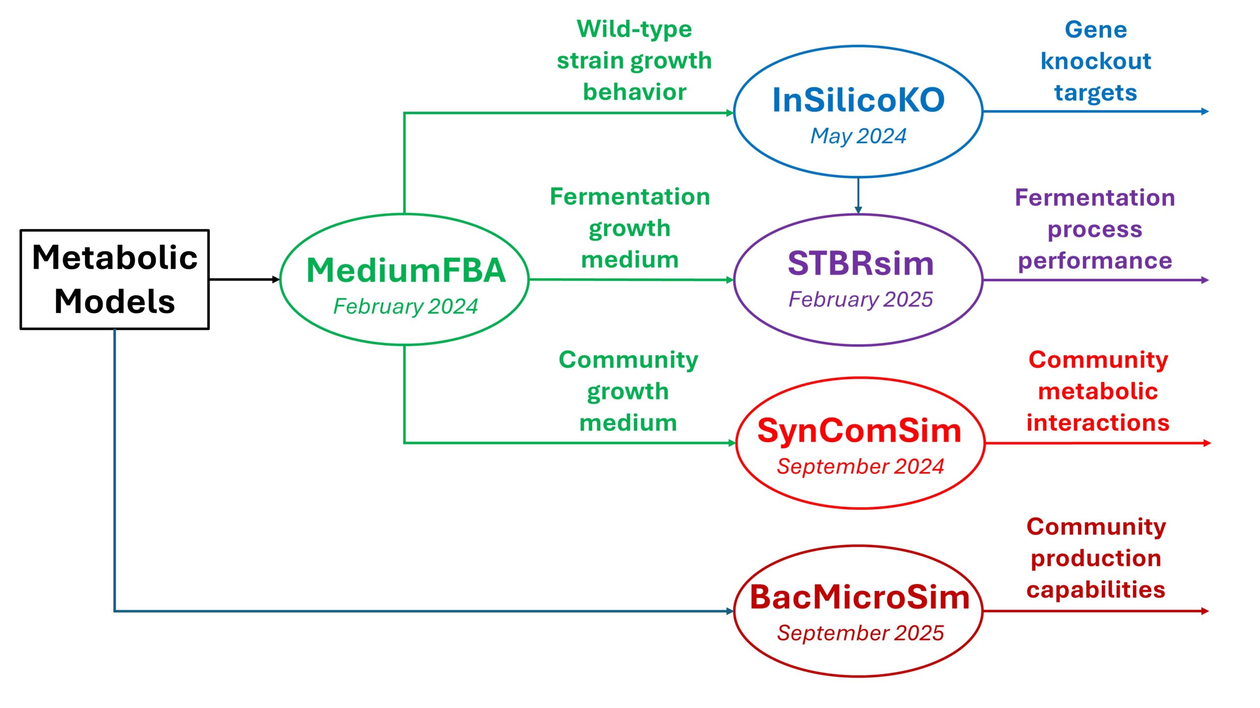 - SynComSim – Metabolic Simulation of Synthetic Microbial Communities using Genome-Scale Metabolic Models (first release September 2024)